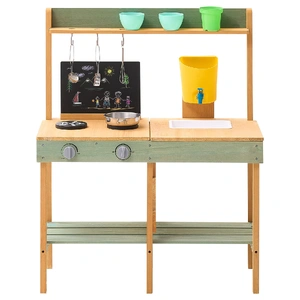 Let your little one imitate cooking with dirt just like a real chef! Little chefs can write and draw menus on the magnetic chalkboard, use the removable sink with integrated water tank and faucet to clean up their "dishes," and turn the stove knobs to begin cooking. They can also bake "mud pies" in the dual-layer oven. The endless kitchen play scenarios will inspire your child's culinary creativity