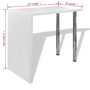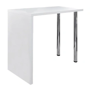 This high glossy standing bar table is the perfect alternative for small flats or where space is a little limited. Its contemporary design makes this table a chic addition to your kitchen or dining area.Thanks to the sturdy MDF table surface, it is easy to keep clean. Specular painted, it has high gloss. The 2 steel legs and MDF side stand give the table optimum stability. You will surely feel more comfortable and enjoyable to sit beside this glossy bar table when drinking wine or coffee.Moreover, the white coffee table is of an ideal height and special design, which will certainly complement the decoration of your house.