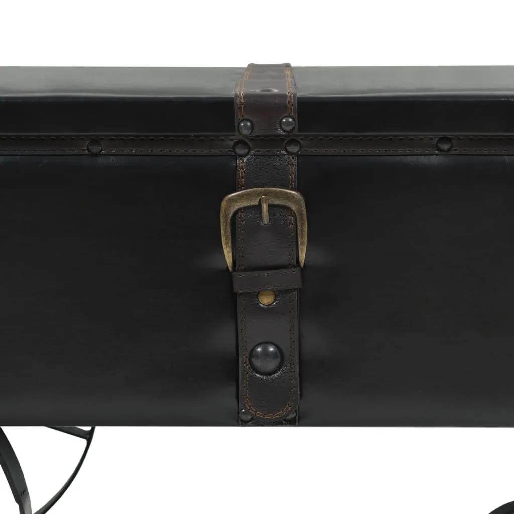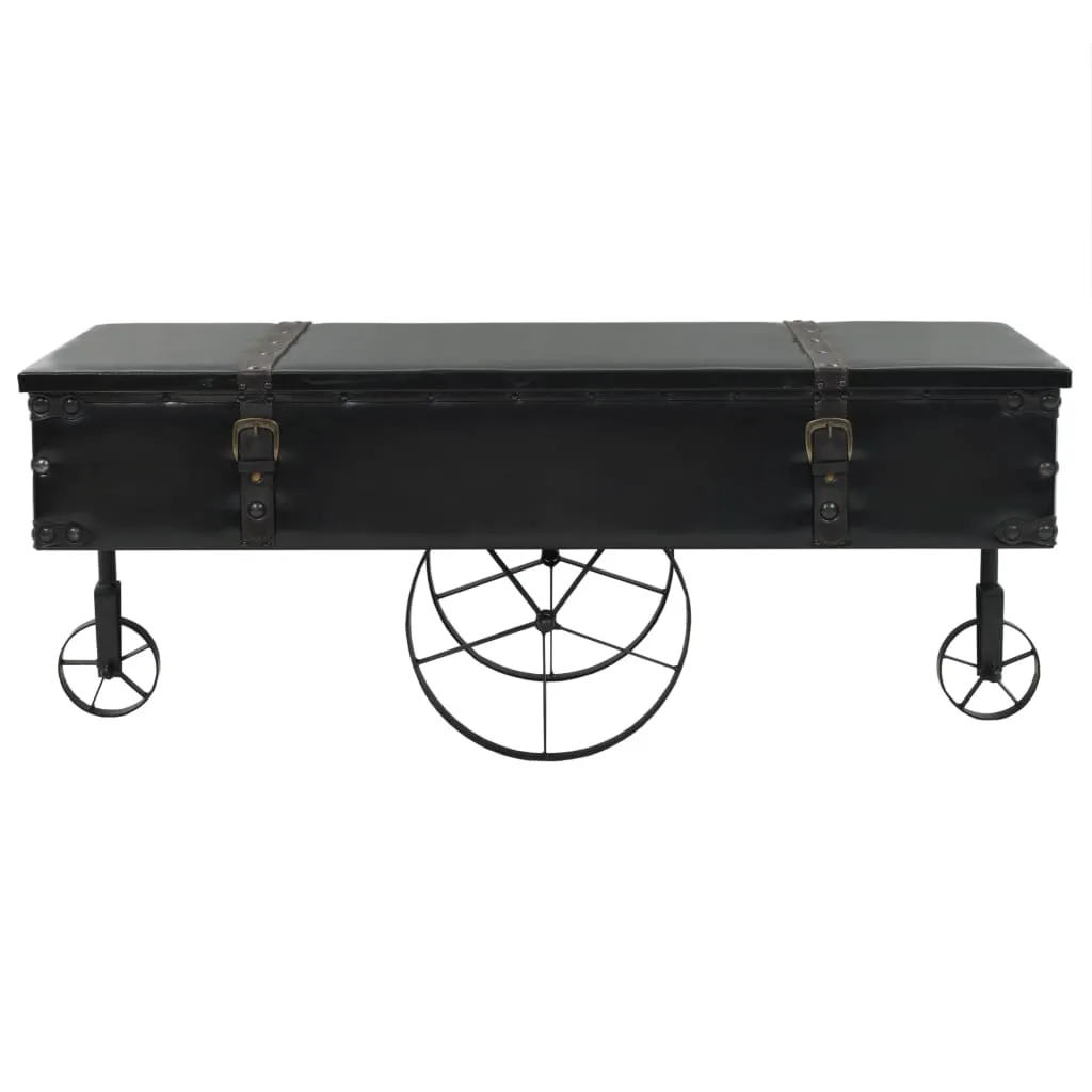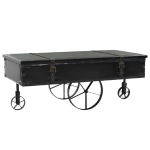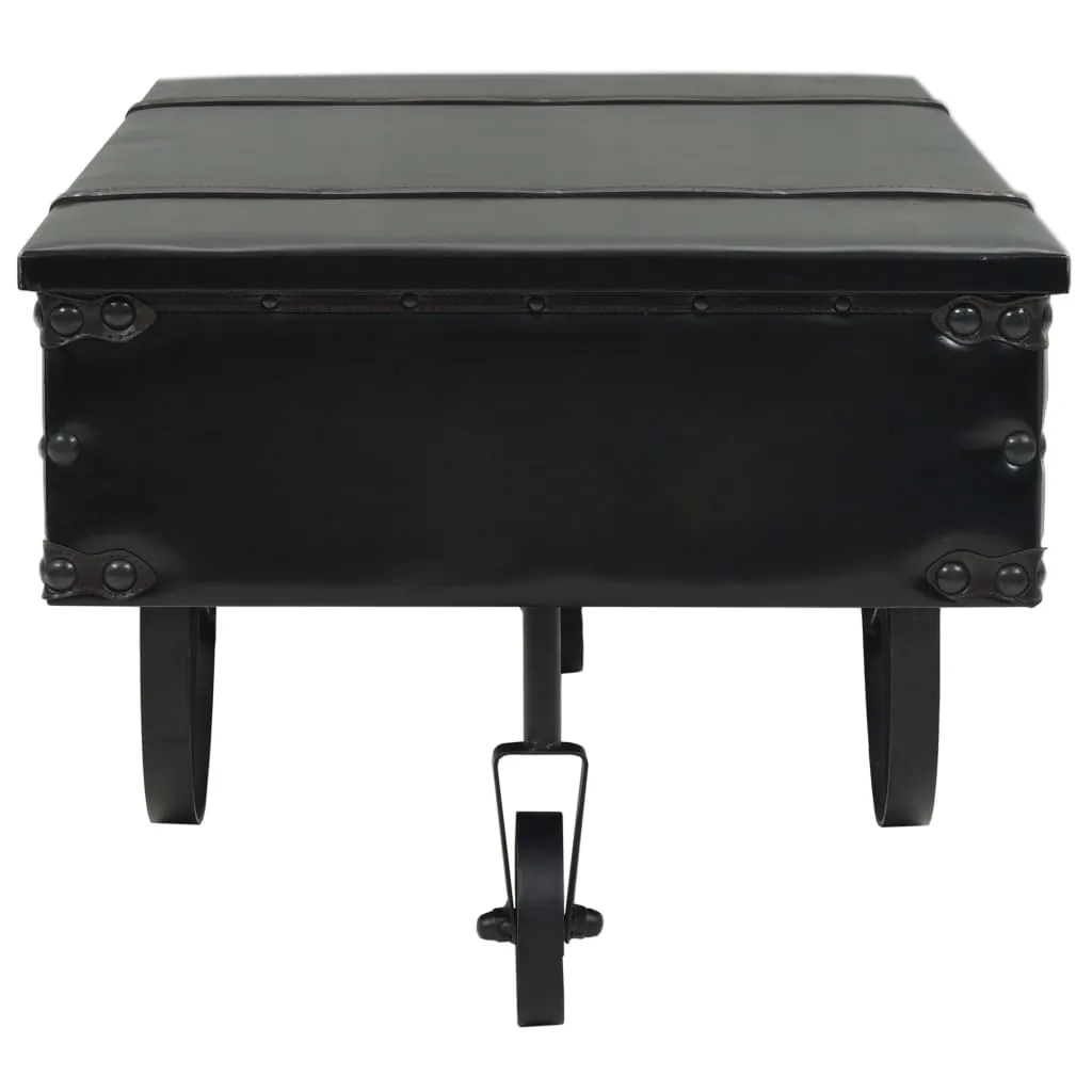 This unique coffee table in the shape of a travelling trunk will make a stylish addition to your decor with its spectacular industrial design. It can also be used as a side table or end table. This durable and beautiful table is made of MDF and solid fir wood covered in padded artificial leather; 2 large wheels are for decoration and add to its industrial style. The tabletop is ideal for placing drinks, vases, potted plants, fruit baskets, and other decorative items. The 2 small wheels make it easier to move the table around. The trunk table is easy to assemble.