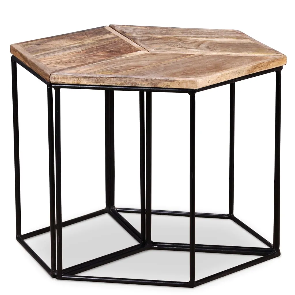 This wooden coffee table exudes a vintage charm and will make a timeless addition to your home. The modular coffee table consists of 3 smaller tables that can be configured as a coffee table or used separately as side tables, night stands, or stools. The coffee table is handmade out of solid mango wood which is stable, durable and beautiful, and the craftsmanship adds to its spectacular retro style. Every step of the process is carried out with the greatest care, be it polishing or lacquering. The craftsmanship and the beautiful wood grains make every piece of furniture unique and slightly different from the next. The frame is made of durable iron that adds to the tables' sturdiness. Important note: The colours vary from piece to piece, making each of our tables unique. The delivery is random, ensuring the exclusivity and individuality of your product.