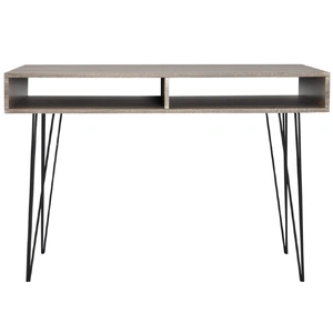 This remarkably functional piece of furniture will liven up any home or office environment. Featuring a high-quality MDF top and solid metal legs, this desk is very durable, stable and sturdy. The spacious table top provides large space for placing your computer, laptop, table lamp, etc. Its two compartments are perfect for keeping all kinds of smaller items like keys, notepads, pens, and other knick-knacks neatly organised and within reach.
