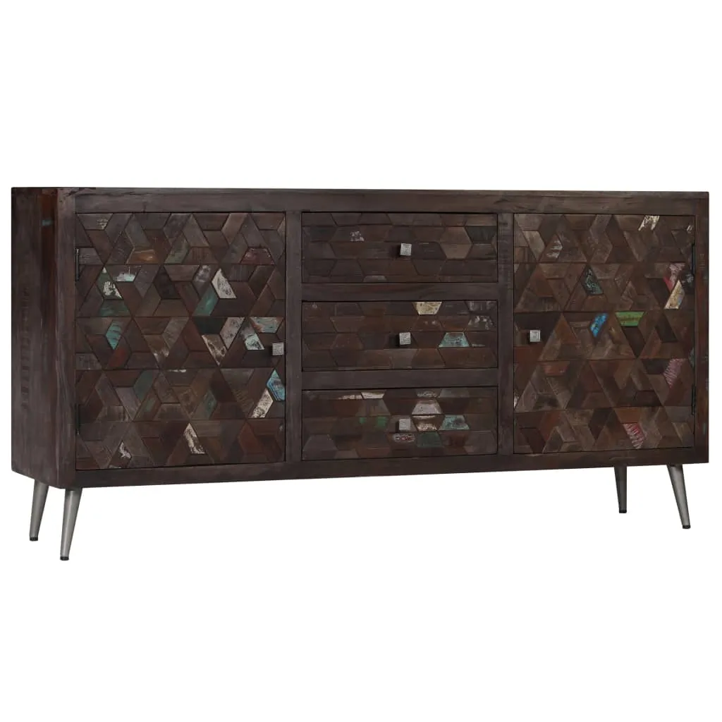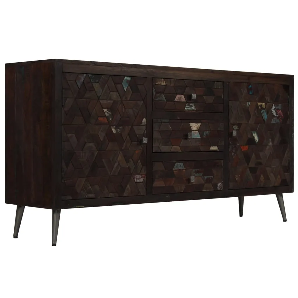 This solid wooden sideboard will make a decorative as well as practical addition to your decor. The cabinet is made of solid reclaimed wood that has been sourced from joists, floors and support beams from old buildings being demolished, and can consist of different types of wood like pine, teak, beech, oak, cedar, mango wood, acacia, etc. This means the reclaimed wood retains the characteristics of these different types of wood. Reclaimed wood is already aged, weathered and dried, so it doesn't shrink or bend. The beautiful wood grains make every piece of furniture unique and slightly different from the next. Signs of wear and visible grain structure are indicative of the wood's rich history and give the cabinet a warm and authentic look. Every step of the process is carried out with the greatest care, be it polishing, painting or lacquering. Designed with ample storage space, the sideboard keeps your magazines, books, DVDs and multimedia devices well organised and within reach. Its steel legs also add to its sturdiness and stunning industrial style. Assembly is easy. Important note: Colours and grains may vary from piece to piece, making each of our sideboards unique. The delivery is random, ensuring the exclusivity and individuality of your product.