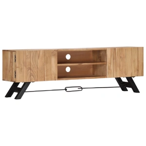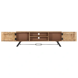 This TV cabinet exudes a rustic charm. It will make a both practical and attention-grabbing addition to your interior. The sideboard is made of solid acacia wood that has been given a finish to endow it with a beautiful look. As a consequence, this beautifully-designed lowboard is exceedingly stable, durable and aesthetically-appealing. Additionally, this wooden cabinet is fully handmade and the graceful wood grains enable every piece of furniture distinctive and slightly different from each other. This HiFi cabinet features 2 compartments and 2 cabinets with doors, providing commodious space for storing your multimedia appliances, books, shoes, as well as various other items. Important note: The wood grains vary from piece to piece, making each piece unique. The delivery is random, ensuring the exclusivity and individuality of your product.