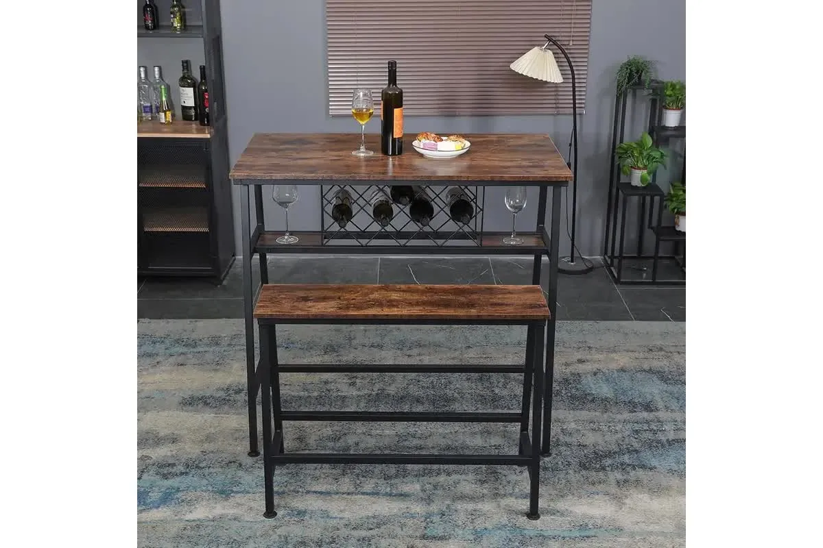 Craft your cozy atmosphere with this durableBartable from Viviendo. Its a great option to knock back an early morning coffee, have a quick dinner, store bottles and other décor. Crafted from durable industrial metal, this easy to assemble the table adds some great personality and storage options to your living space.