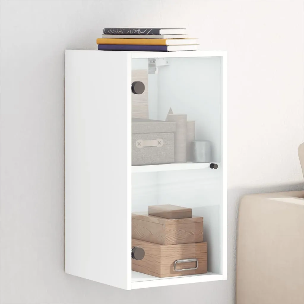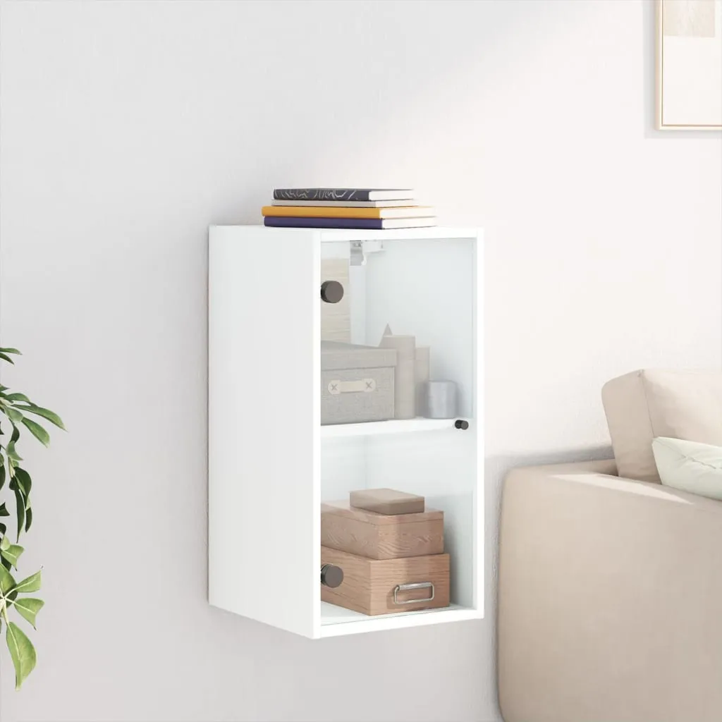 This wall cabinet is stunning and elegant. Not only is it an excellent solution for your chores and decorations, but it is also the perfect decoration for your empty walls and turns them into designer walls. Durable material: The engineered wood is of exceptional quality with smooth surface and also features strength, stability and resistance to moisture.Ample storage space: The hanging cabinet boasts compartments, enabling you to place items such as books, and keep them neatly organised and within reach.Versatile design: You can mount the storage cabinet on the workplace wall for convenient storage of tools or other miscellaneous items. Also, it transforms an empty wall into a design feature.Wall-mounted function: The storage cabinet can be wall-mounted to add extra storage space. That way, you can maximise your floor space and keep the area clean.Practical glass doors: Keep your space clutter-free by hiding small essentials behind the doors of the wall unit. In addition, the glass doors allow you to see inside the floating cabinet to display items beautifully. Good to know:Screws and plugs for inside the wall are not included. We advise to find and use screws and plugs suitable specifically for your walls. If you're not sure, you can consult with a professional. Please read and follow each step of the instructions.