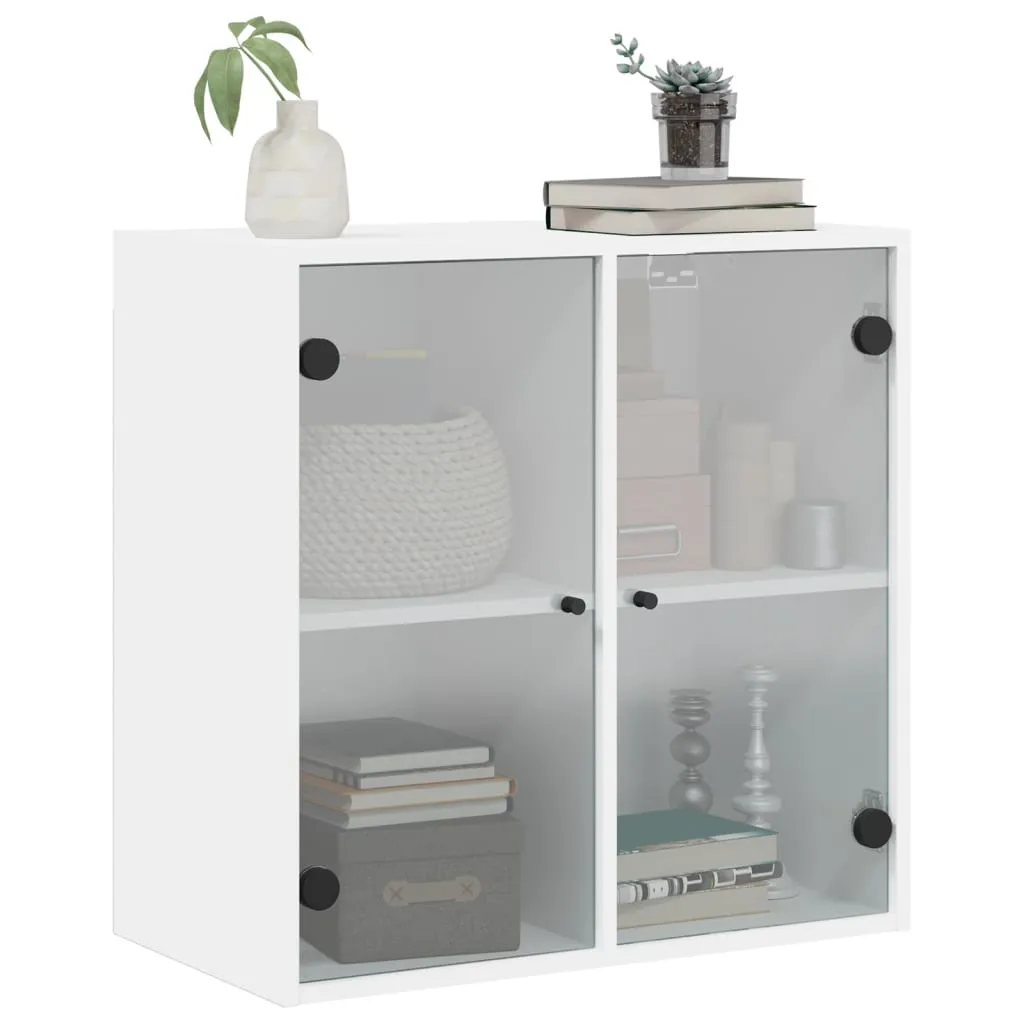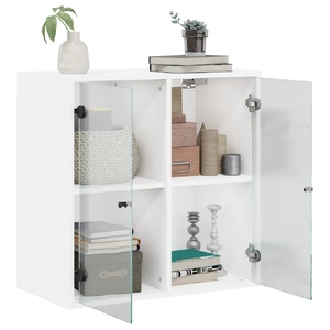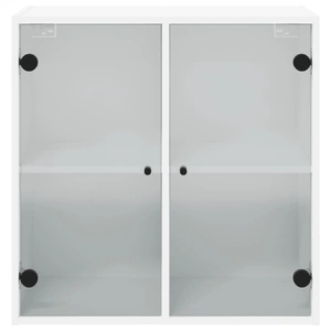 This wall cabinet is stunning and elegant. Not only is it an excellent solution for your chores and decorations, but it is also the perfect decoration for your empty walls and turns them into designer walls. Durable material: The engineered wood is of exceptional quality with smooth surface and also features strength, stability and resistance to moisture.Ample storage space: The hanging cabinet boasts compartments, enabling you to place items such as books, and keep them neatly organised and within reach.Versatile design: You can mount the storage cabinet on the workplace wall for convenient storage of tools or other miscellaneous items. Also, it transforms an empty wall into a design feature.Wall-mounted function: The storage cabinet can be wall-mounted to add extra storage space. That way, you can maximise your floor space and keep the area clean.Practical glass doors: Keep your space clutter-free by hiding small essentials behind the doors of the wall unit. In addition, the glass doors allow you to see inside the floating cabinet to display items beautifully. Good to know:Screws and plugs for inside the wall are not included. We advise to find and use screws and plugs suitable specifically for your walls. If you're not sure, you can consult with a professional. Please read and follow each step of the instructions.