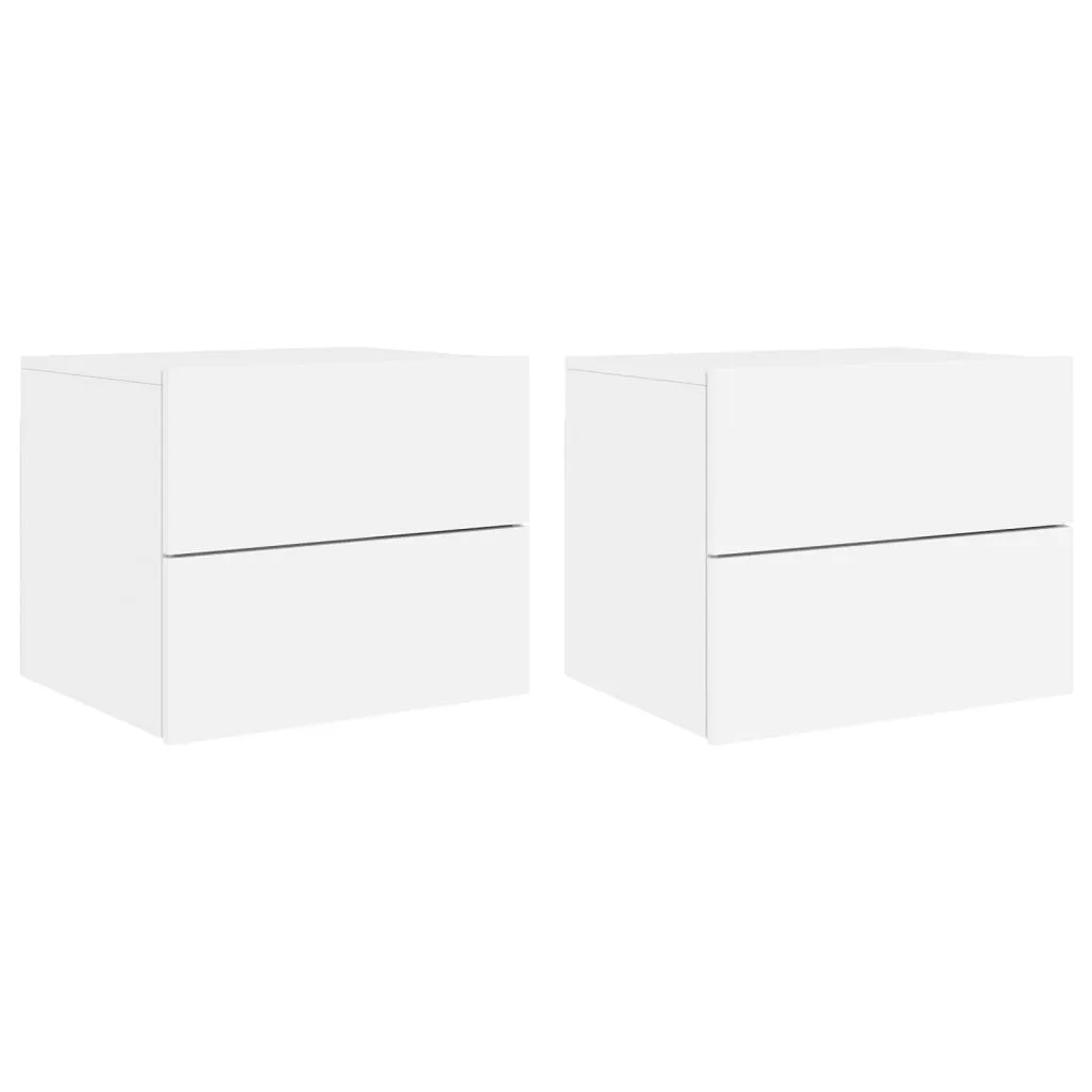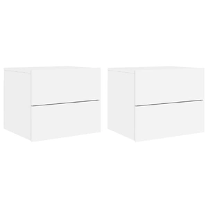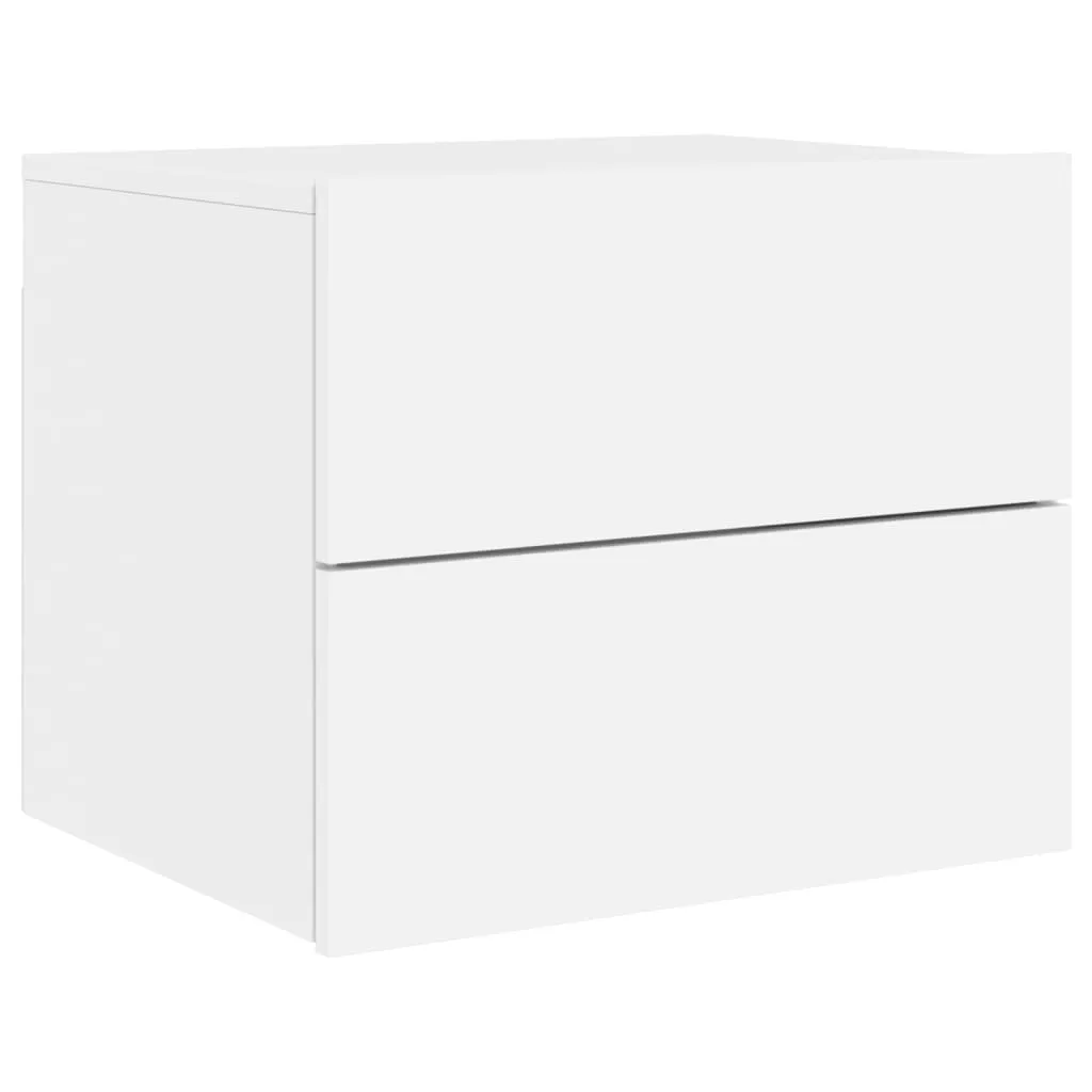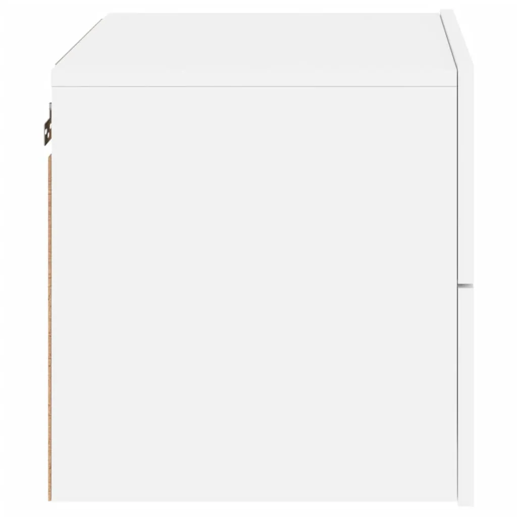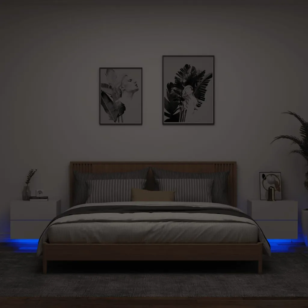 These wall-mounted bedside cabinets with LED lights are the perfect solution for your living space to maximise space and keep the floor areas clean. Durable material: The engineered wood is of exceptional quality with smooth surface and also features strength, stability and resistance to moisture. Made of engineered wood, the wall hung bedside cabinet is easy-to-clean.RGB LED lights: The floating bedside cabinet is equipped with vibrant RGB LED lights. With various customisable menus, you can effortlessly change the colour of the lights and even set them to adjust automatically. These LED lights not only enhance the contemporary look of the cabinet but also add to its trendy appeal.Wall-mounted design: This floating bedside unit can be wall-mounted to add extra storage space. That way, you can maximise your floor space and keep the area clean.Multifunctional cabinet: The bedside wall cabinet serves as the ideal place to put items such as books, collectables, ornaments, and more. It transforms an empty wall into a design feature. Good to know:Screws and plugs for inside the wall are not included. We advise to find and use screws and plugs suitable specifically for your walls. If you're not sure, you can consult with a professional. Please read and follow each step of the instructions.The product has a USB connector that requires a certified 5V USB power source (not included).