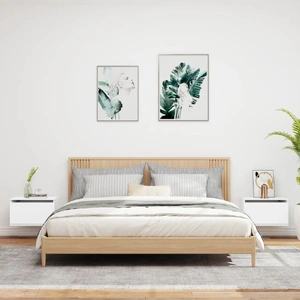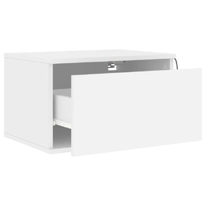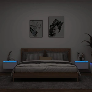 These wall-mounted bedside cabinets with LED lights are the perfect solution for your living space to maximise space and keep the floor areas clean. Durable material: The engineered wood is of exceptional quality with smooth surface and also features strength, stability and resistance to moisture. Made of engineered wood, the wall hung bedside cabinet is easy-to-clean.RGB LED lights: The floating bedside cabinet is equipped with vibrant RGB LED lights. With various customisable menus, you can effortlessly change the colour of the lights and even set them to adjust automatically. These LED lights not only enhance the contemporary look of the cabinet but also add to its trendy appeal.Wall-mounted design: This floating bedside unit can be wall-mounted to add extra storage space. That way, you can maximise your floor space and keep the area clean.Multifunctional cabinet: The bedside wall cabinet serves as the ideal place to put items such as books, collectables, ornaments, and more. It transforms an empty wall into a design feature. Good to know:Screws and plugs for inside the wall are not included. We advise to find and use screws and plugs suitable specifically for your walls. If you're not sure, you can consult with a professional. Please read and follow each step of the instructions.The product has a USB connector that requires a certified 5V USB power source (not included).