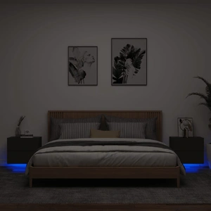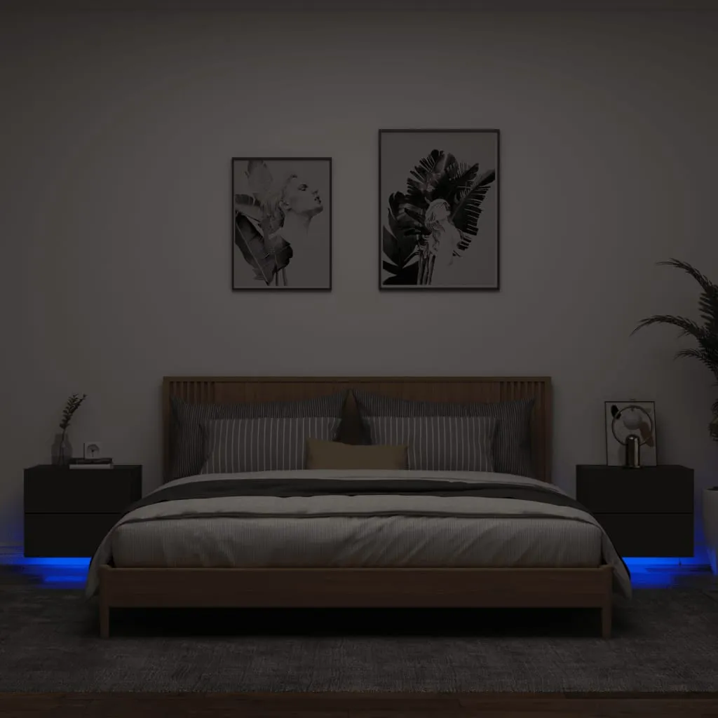 These wall-mounted bedside cabinets with LED lights are the perfect solution for your living space to maximise space and keep the floor areas clean. Durable material: The engineered wood is of exceptional quality with smooth surface and also features strength, stability and resistance to moisture. Made of engineered wood, the wall hung bedside cabinet is easy-to-clean.RGB LED lights: The floating bedside cabinet is equipped with vibrant RGB LED lights. With various customisable menus, you can effortlessly change the colour of the lights and even set them to adjust automatically. These LED lights not only enhance the contemporary look of the cabinet but also add to its trendy appeal.Wall-mounted design: This floating bedside unit can be wall-mounted to add extra storage space. That way, you can maximise your floor space and keep the area clean.Multifunctional cabinet: The bedside wall cabinet serves as the ideal place to put items such as books, collectables, ornaments, and more. It transforms an empty wall into a design feature. Good to know:Screws and plugs for inside the wall are not included. We advise to find and use screws and plugs suitable specifically for your walls. If you're not sure, you can consult with a professional. Please read and follow each step of the instructions.The product has a USB connector that requires a certified 5V USB power source (not included).