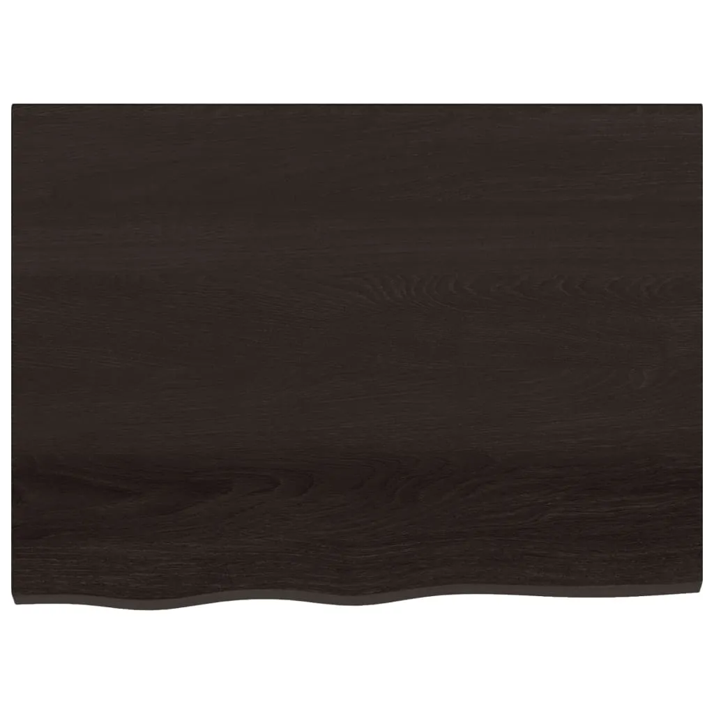 Do you need more storage options but don't have any spare space? This wall shelf in rustic style is the perfect solution. Durable construction: The wall shelf is made of solid oak wood, which is a beautiful natural material. Oak wood has a medium brown colour and a dense grain, contributing to its unique look.Versatile applications: Besides a shelf, this storage shelf can be combined with different bases according to your needs. It can be used as a bathroom top, cabinet top, desk top, table top etc.Treated surface: The wooden shelf has been treated with dark paint so it is ready for use as an additional finish is not required.Handmade with live edge: This shelf board is handmade with a live edge. Due to that the knots, cracks, slightly curved shapes, and colour tones are part of the oak wood, every piece of shelf has its own unique character to display. The delivery is random, ensuring the exclusivity and individuality of your product. Good to know:As a natural product, wood may show knots and imperfections that we fill with black fillings to ensure a smooth appearance.