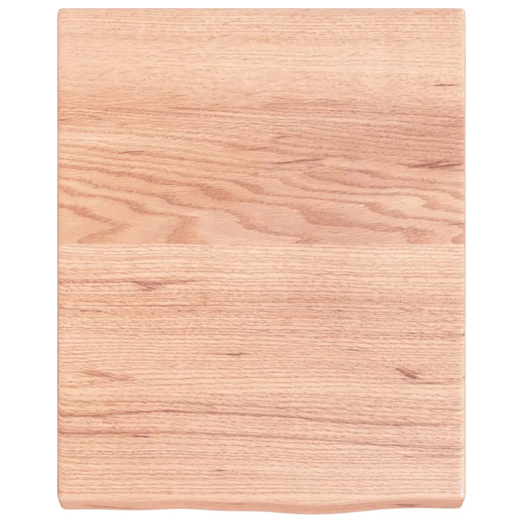 Do you need more storage options but don't have any spare space? This wall shelf in rustic style is the perfect solution. Durable construction: The wall shelf is made of solid oak wood, which is a beautiful natural material. Oak wood has a medium brown colour and a dense grain, contributing to its unique look.Versatile applications: Besides a shelf, this storage shelf can be combined with different bases according to your needs. It can be used as a bathroom top, cabinet top, desk top, table top etc.Treated surface: The wooden shelf has been varnished so it is ready for use as an additional finish is not required.Handmade with live edge: This shelf board is handmade with a live edge. Due to that the knots, cracks, slightly curved shapes, and colour tones are part of the oak wood, every piece of shelf has its own unique character to display. The delivery is random, ensuring the exclusivity and individuality of your product. Good to know:As a natural product, wood may show knots and imperfections that we fill with black fillings to ensure a smooth appearance.