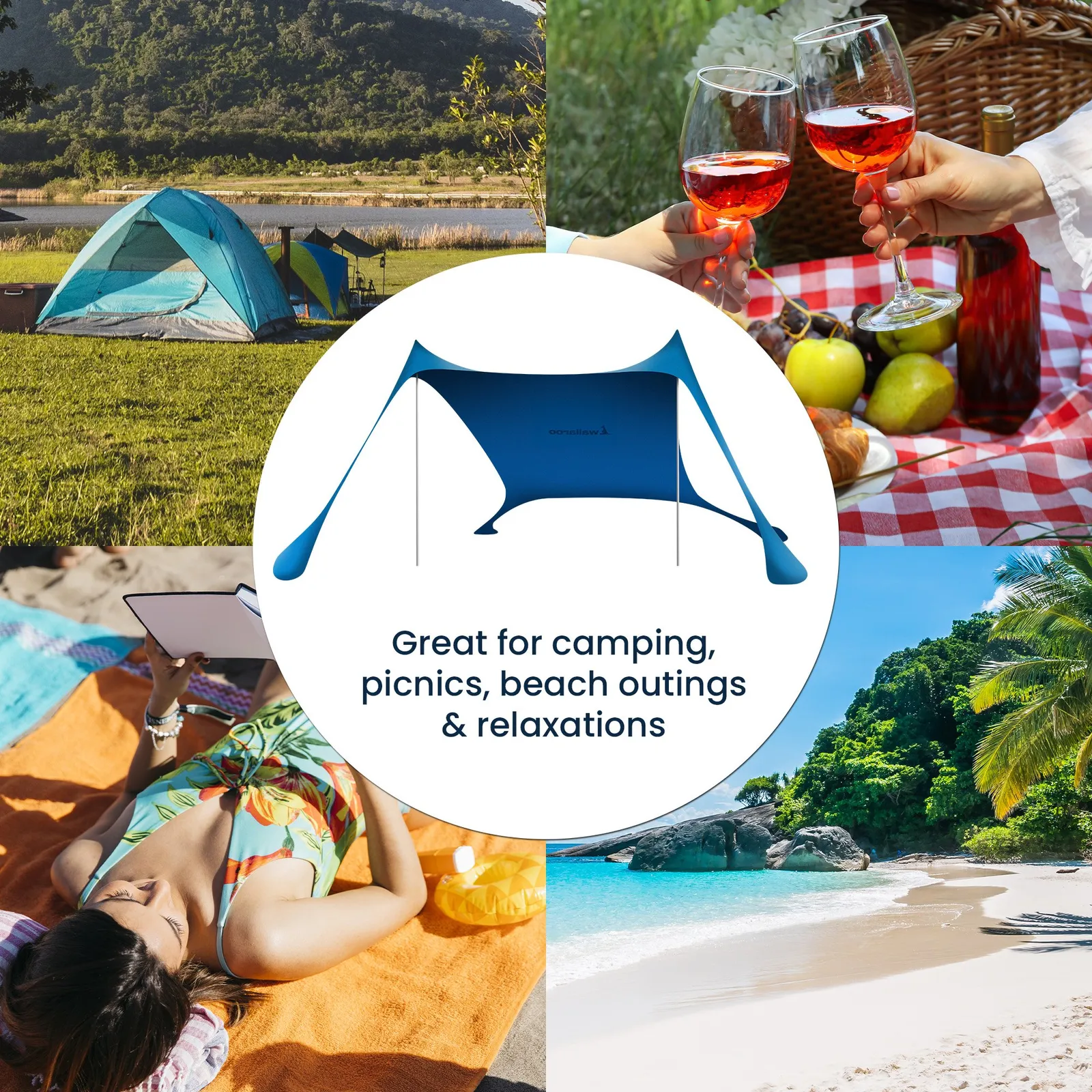 Easy to mount and completely portable, this tent is your ultimate summer sidekick, promising endless relaxation under its protective canopy. Embrace the sun without the burn with Wallaroos multi-purpose beach tent!