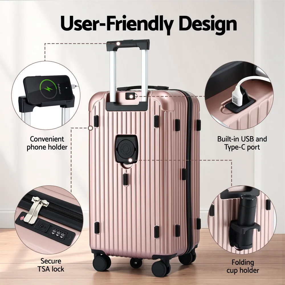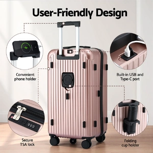 Wanderlite Trunk Luggage makes packing a dream, not a chore. With its innovative 3/7 split compartment, you'll conquer clutter, while built-in USB & Type-C ports keep you charged on the go. Glide effortlessly with reinforced 360�� spinner wheels and rest easy knowing your gear is safe thanks to the TSA lock and durable ABS shell. Plus, a hidden wet compartment keeps everything fresh.