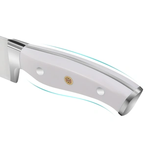 One piece full-tang blade and the ABS classic triple-riveted to ensure the durability and reliability of chefs knife, since they won't shrink, crack or falls off. The ergonomic handle design result in a comfortable grip that minimize fatigue while maximizing cutting accuracy.