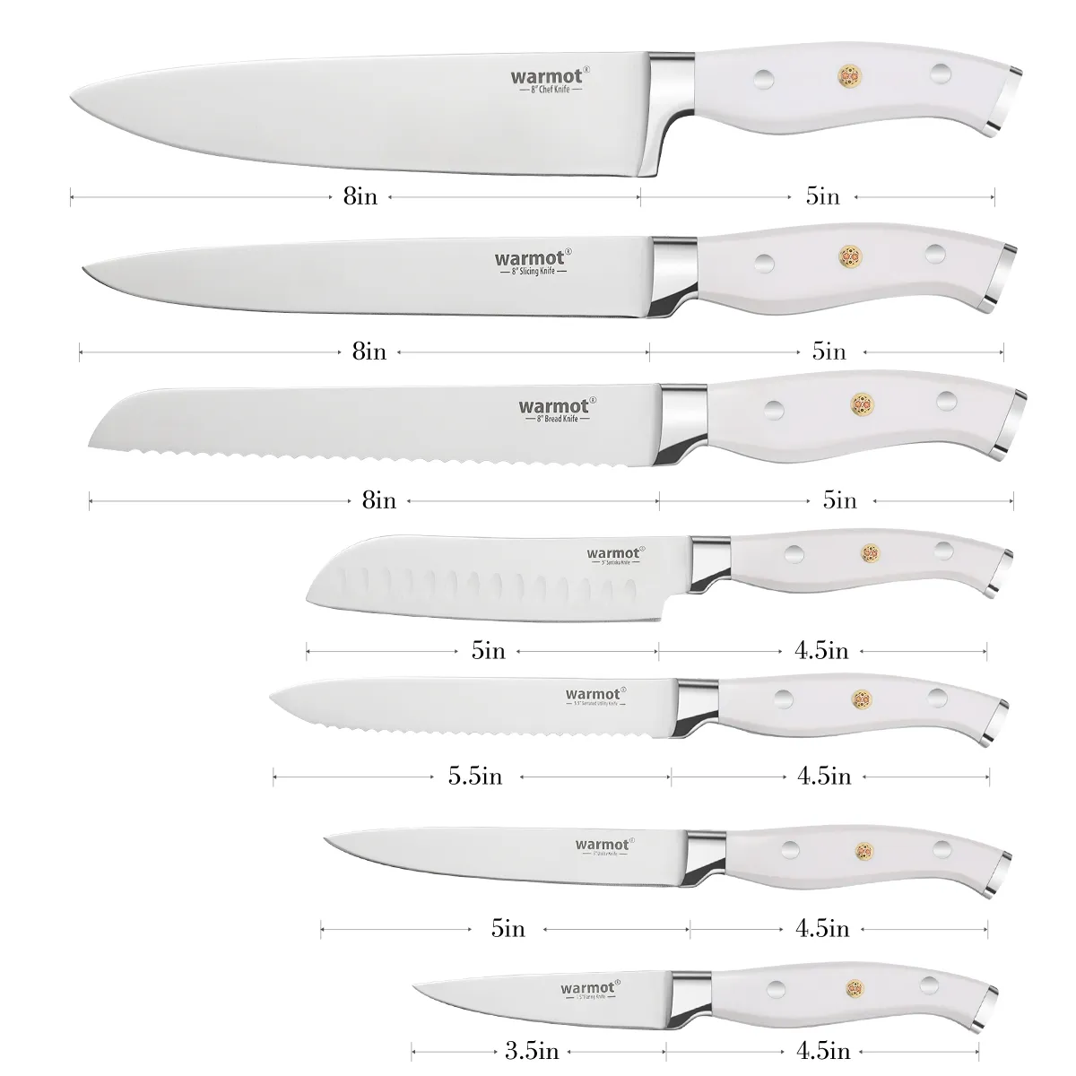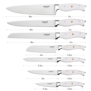 Our Kitchen knife set is suitable for mothers day gifts, fathers day gifts, housewives, birthdays, housewarming gifts, and Christmas gifts.warmot provides customers free replacement and lifetime guarantee.