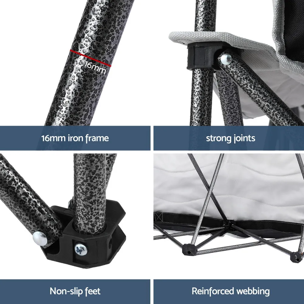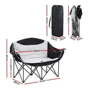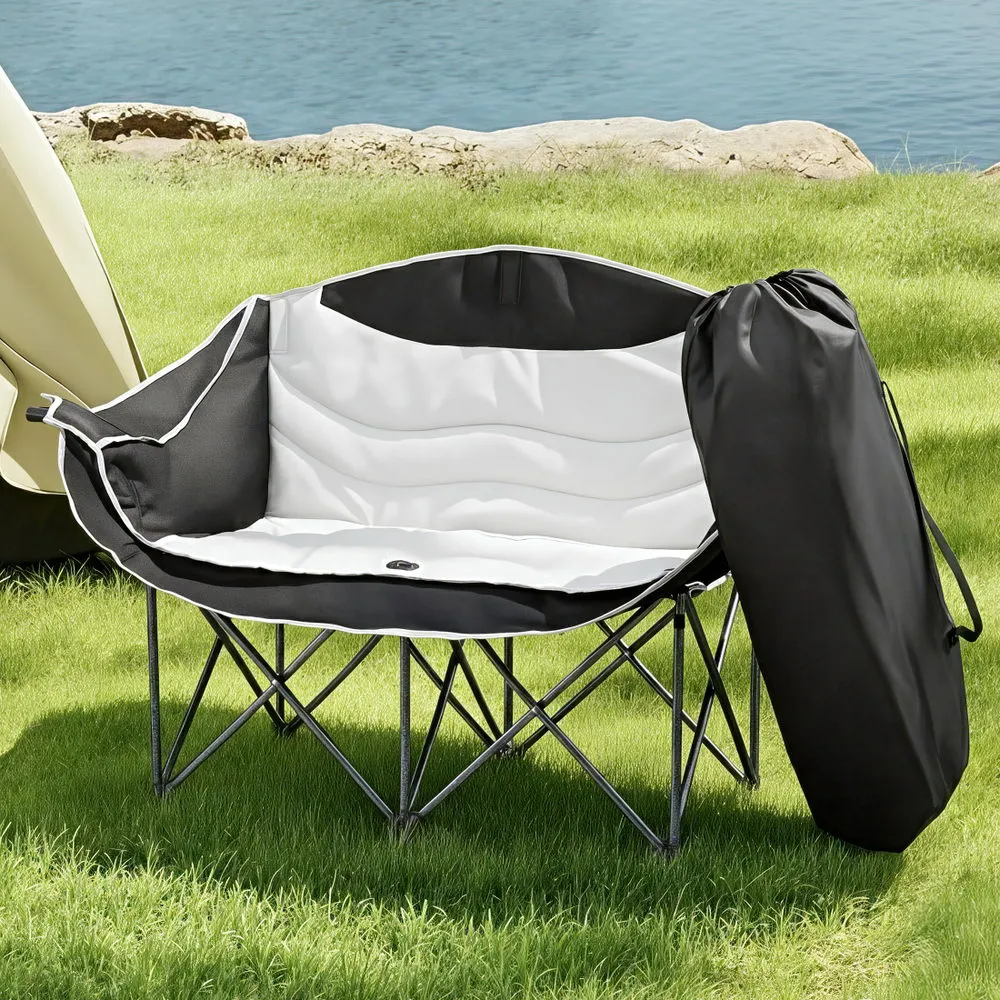The Weisshorn Folding Double Moon Chair is built for comfort, strength and convenience, offering extra space so two people can relax together. With its spacious curved seat design, this two-seater chair provides ergonomic support and a cosy feel, making it far more inviting than standard camping chairs. Crafted with a reinforced iron frame, it delivers reliable stability and supports up to 240kg, ensuring secure seating for shared use. The seat is made from water-resistant and breathable 600D Oxford fabric, combining toughness with lasting comfort, while helping to handle light outdoor moisture and airflow during long hours of sitting. Practical touches add more value, including a built-in drink holder to keep beverages close at hand and a carry bag that makes storage and transport effortless. Despite its strong build, the chair remains lightweight, folds down compactly, and requires no assembly, meaning you can set it up or pack it away in seconds. Perfect for camping, fishing, festivals, beach trips, picnics or simply unwinding in your backyard, the Weisshorn Double Moon Chair is a versatile two-seater that balances comfort, practicality and durability, ensuring you always have a reliable spot to share and enjoy the outdoors.