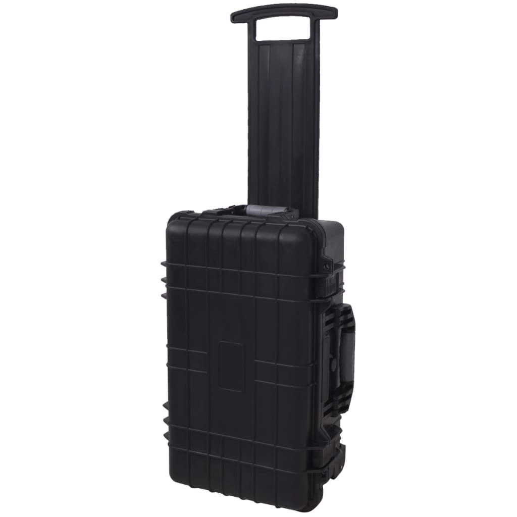The tool case is equipped with two wheels and an adjustable telescopic handle to help you carry the case during travels. Its attractive black finish makes it durable for years of use. It is lockable with 2 padlocks for maximum security (Locks not included).