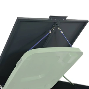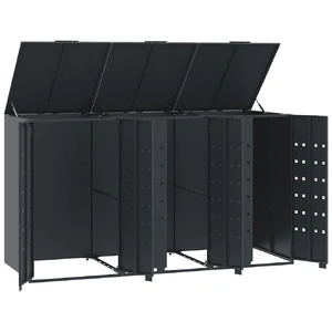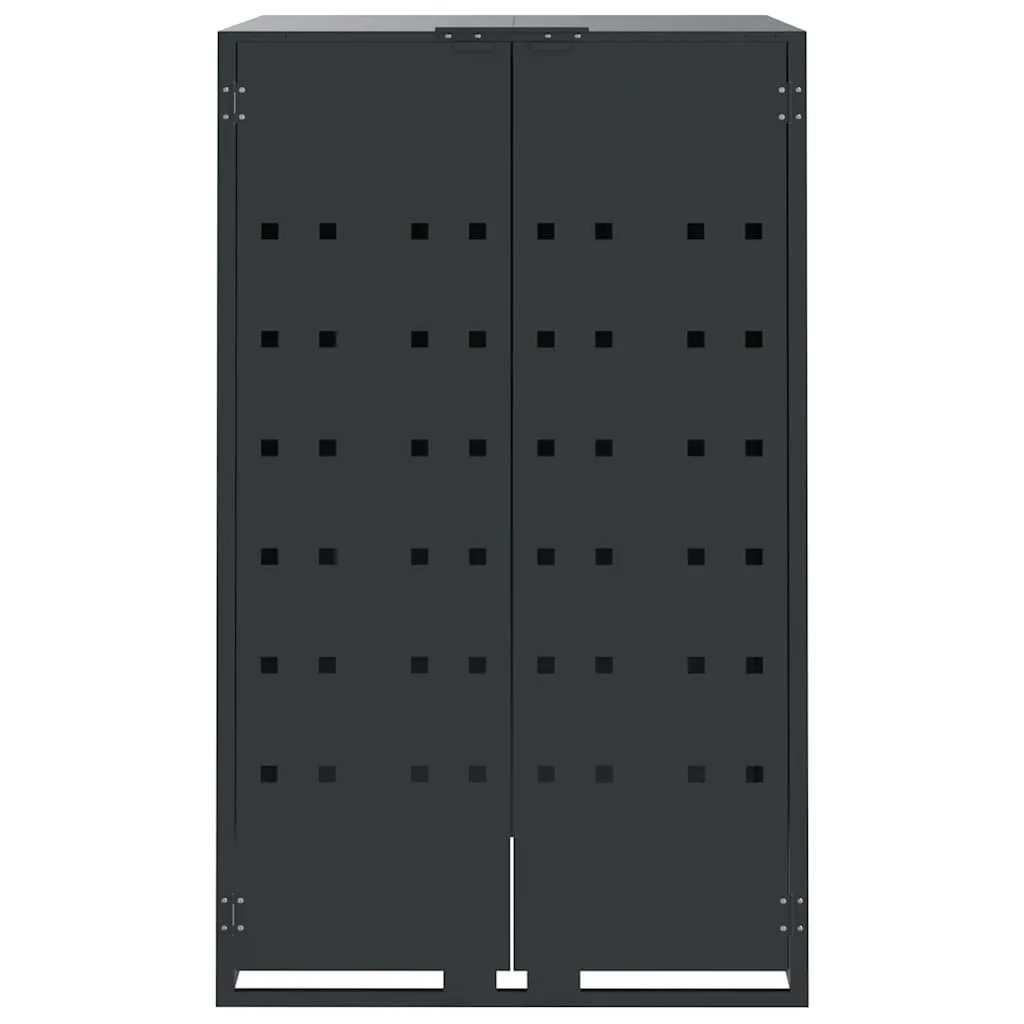 This wheelie bin storage discreetly hides your garbage bins in the garden, transforming your outdoor space into a beautiful and tidy environment. Strong and durable material: The powder-coated steel provides strength, stability, durability, and resistance to corrosion and harsh weather conditions, ensuring long-lasting performance.Practical lid mechanism: The gas-spring lid comes with a bungee cord that connects your bin's lid to it, so the bin lid opens automatically when you lift the lid of the bin store.Easy access: The front doors with magnetic closures make it a breeze to remove and replace the bins, ensuring waste disposal is effortless.Good ventilation: These vents on the panels promote air circulation, preventing odour buildup and keeping your bins fresh.Flexible design: You can enlarge your bin shed to accommodate more bins by adding extra extensions. These extensions are available for individual purchase at the store.