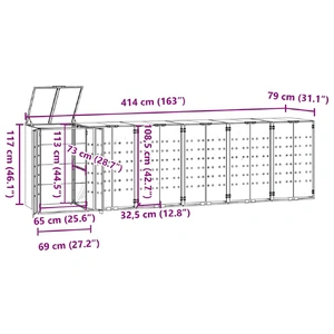 - Overall dimensions: 414 x 79 x 117 cm (W x D x H)