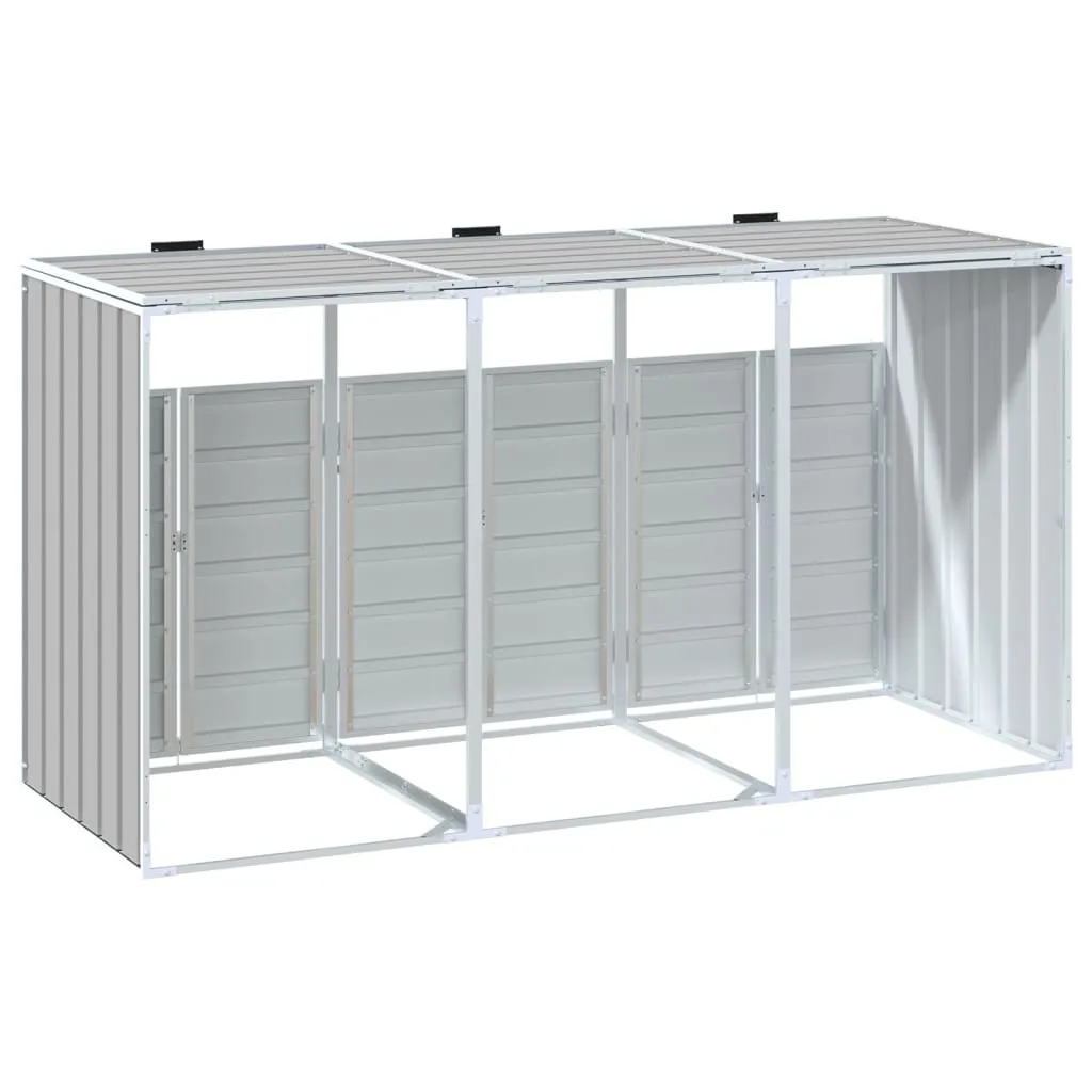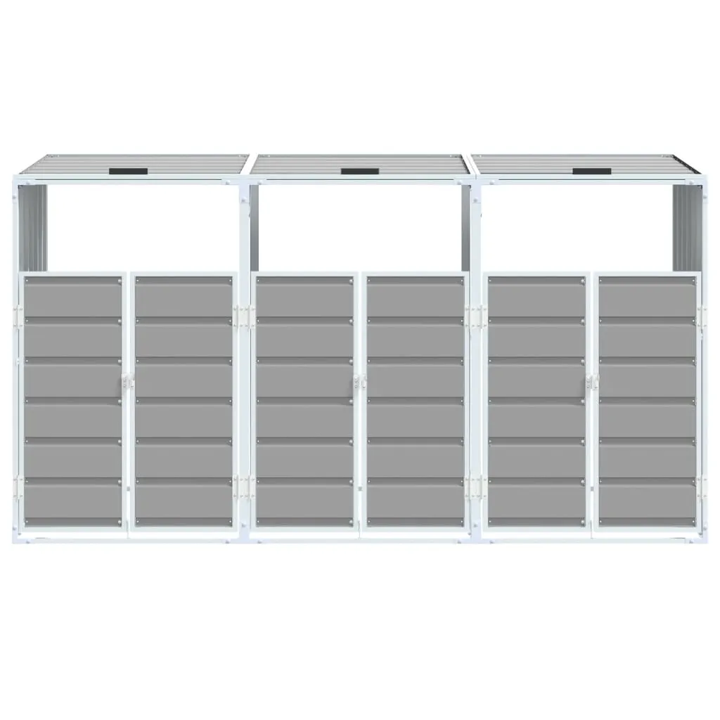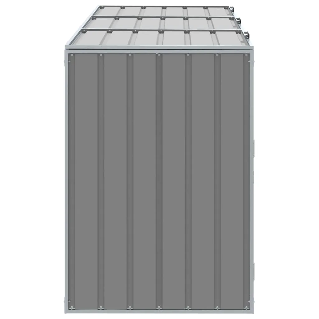 This wheelie bin storage discreetly hides your garbage bins in the garden, transforming your outdoor space into a beautiful and tidy environment. Strong and durable material: The powder-coated steel provides strength, stability, durability, and resistance to corrosion and harsh weather conditions, ensuring long-lasting performance.Practical lid mechanism: The lid comes with chains that connect your bin's lid to it, so the bin lid opens automatically when you lift the lid of the bin store.Easy access: The front doors with a latch system make it a breeze to remove and replace the bins, ensuring waste disposal is effortless.Good ventilation: These vents on the panels promote air circulation, preventing odour buildup and keeping your bins fresh.Flexible design: You can expand this wheelie bin storage to hold more bins by adding extra extensions. These extensions are available for individual purchase at the store.