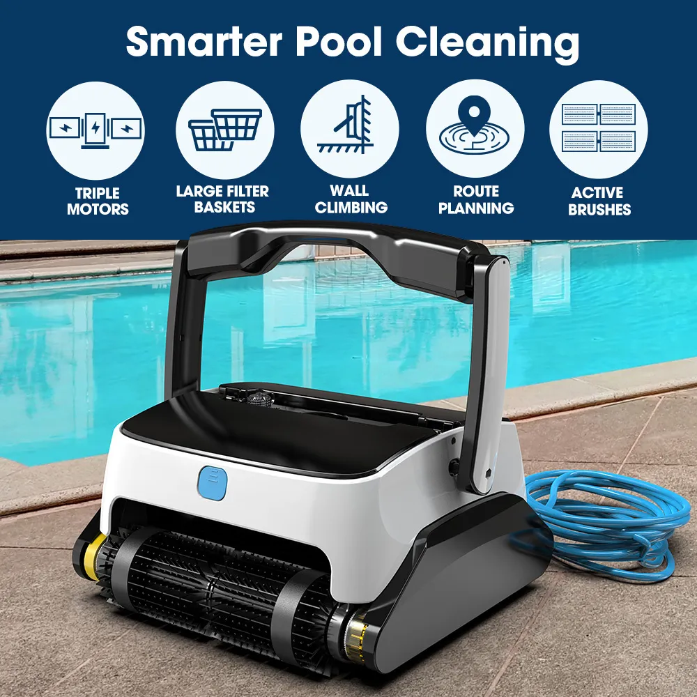 The WYBOT Grampus 800 is a simple plug and play robotic pool cleaner that allows for a convenient, hassle-free and efficient cleaning experience.