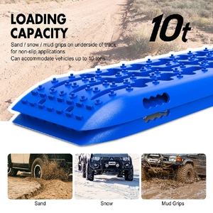 Sand/snow/mud grips on underside of track for non-slip applications can accommodate vehicles up to 10 tons.