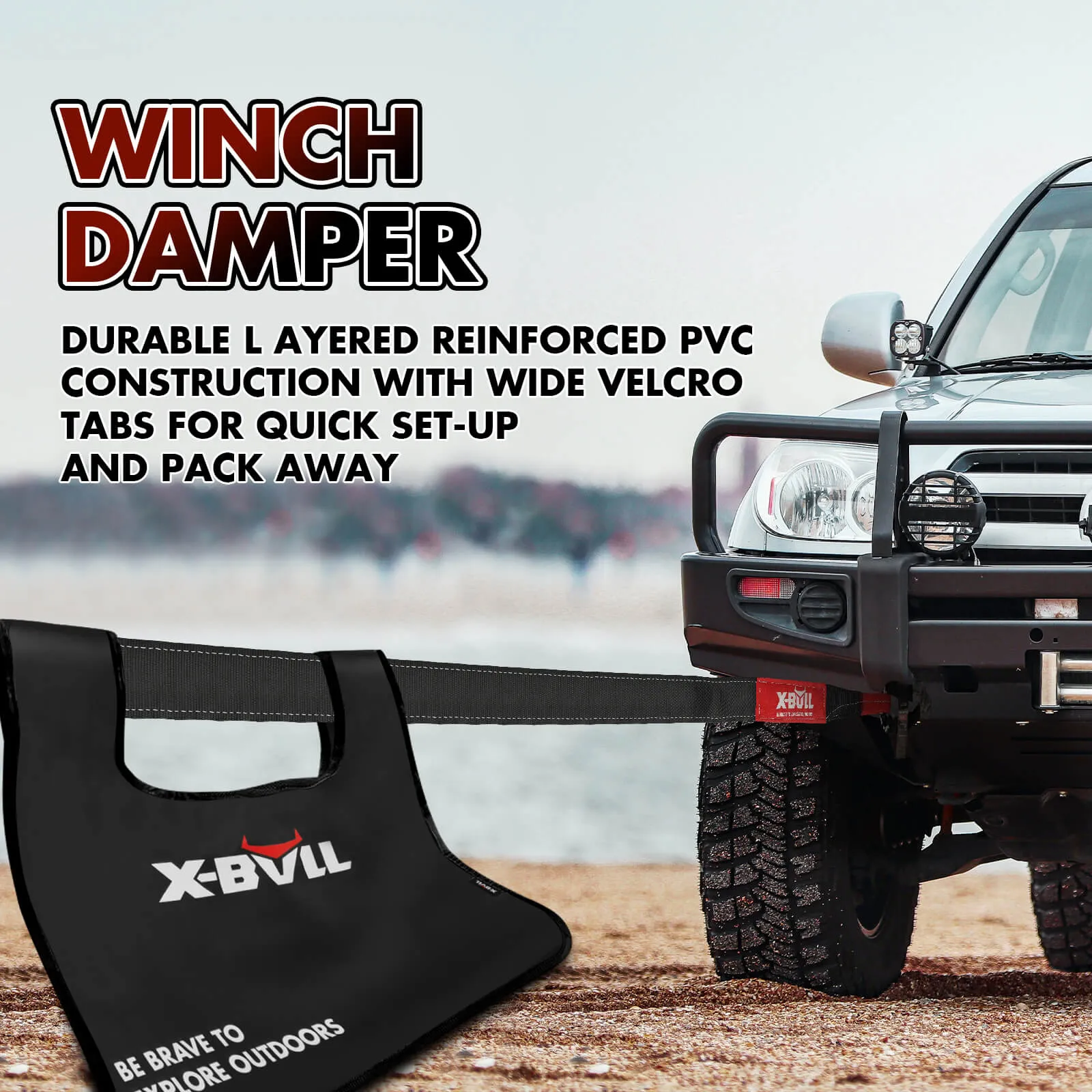 The X-BULL Recovery Kit is equipped with a 7/8 inch x 30 ft towing rope, 2 Spectra fiber soft shackles 3/8 "x 22" (34000 pounds), 3 inch x 8 ft trailer strap (30000 pounds), 1 pair of heavy gloves and 1 storage bag. Oh, and a set of stickers. X-BULL power recovery rope is made of double-woven high-quality nylon. The wire rope is coated with high wear-resistant polymer to prevent ultraviolet rays, water and abrasion, and the eye ring connecting the fixing point is immersed in a thick protective rubber coating to ensure that the service life is extended at the most important place.