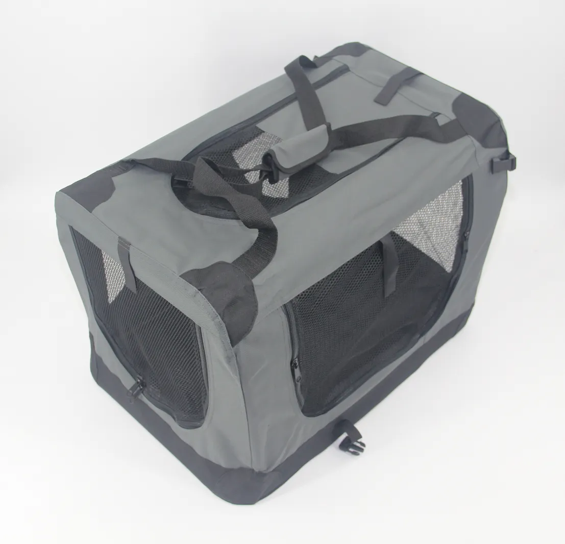 Our Dog Crate is made of 600D polyester giving higher durability. The design features mesh windows in every panel delivering better ventilation and a comfortable floor mat. Theaccessory bagon the side provides handy storage of accessories.