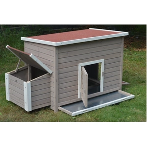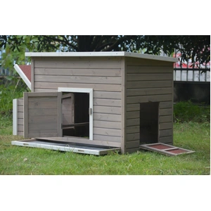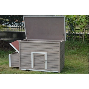 - Integrated nesting boxand the roof of the nesting box can be opened for collecting eggs