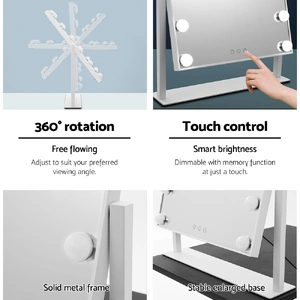 Fairest beauty looks even better with our Embellir Standing Makeup Mirror. Looking very much like a celebrity makeup mirror, our mirror features nine LED bulbs on its slim 2.5cm thick frame. In fact, the entire mirror is almost frameless. The lights can be adjusted for brightness and colour, from cool white to warm white with its touch control, offering a soft and ambient glow to complement your true image. Better still, the mirror is totally rotable and stands on an enlarged base for added stability. Mirror your exceptional countenance with this lovely Embellir Standing Makeup Mirror.