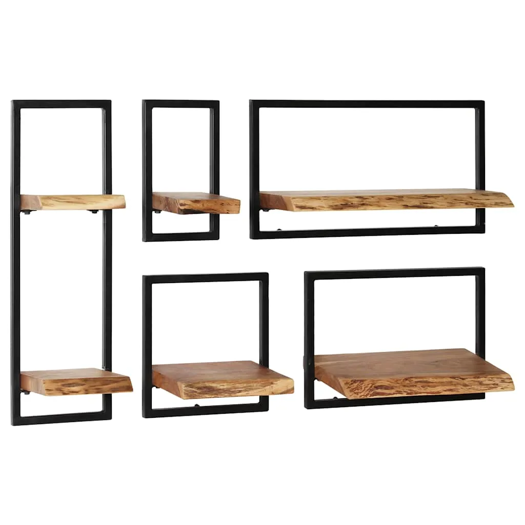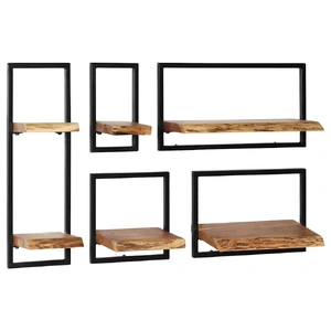 This wall shelf set consists of 5 shelf units in different sizes and will turn an empty wall into a special feature with its retro design. The solid wooden shelves are ideal for displaying various items such as books, awards, collectables, ornaments, etc. The shelf set combines solid acacia hardwood shelves with stable powder-coated steel frames. The acacia hardwood shelves are solid, stable and durable and the visible wood grains exude a rustic charm, while the steel frames add to the set's industrial look. The shelf units can be used separately or together to suit your interior decor. The wall shelf set is easy to assemble. Important note: Colours and grains may vary from piece to piece, making each of our products unique. The delivery is random, ensuring the exclusivity and individuality of your product.