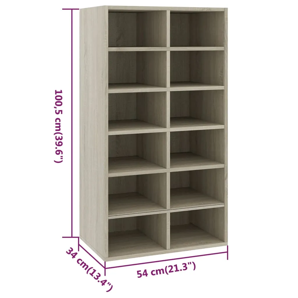 Keep your shoes organised and always at hand with our shoe rack! This rack is made of quality engineered wood, which is durable and sturdy for long service life. It is in a simple design, which can fit easily into your existing living space. With ample space of 12 compartments, this rack can accommodate many shoes, storage boxes, hobby utensils, collectibles and more. Wall mounting accessories and a wall anchor to prevent the rack from tipping over are included in delivery. It is easy to clean with damp cloth. The rack is easy to assemble.